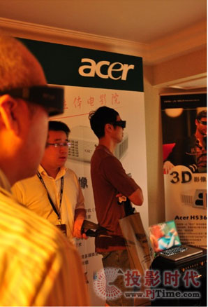 网庭影音机构在Acer动态展厅内真实还原了在电影院才可享受到的3D高清电影《阿凡达》精彩片断,演示厅门口一度排起长队,参观者对于3D电影的热情一如影片公映时,丝豪不减。